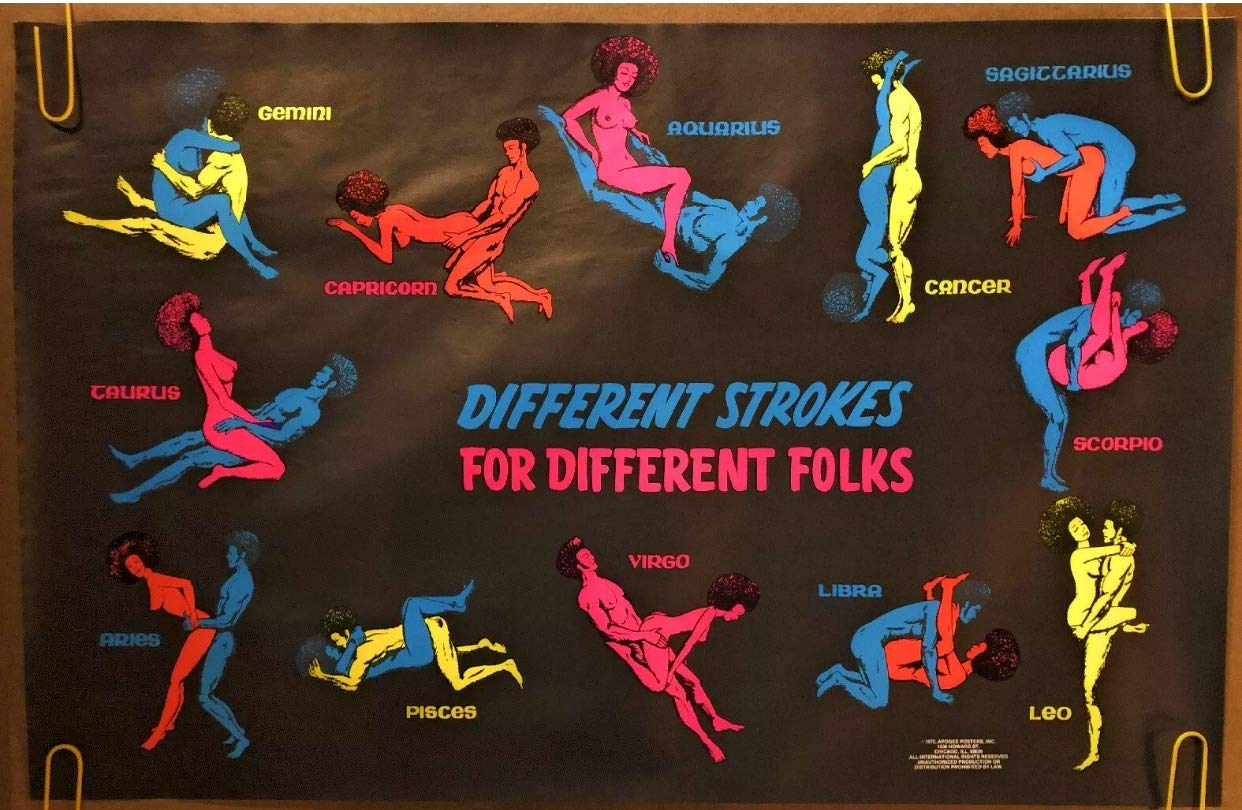Vintage Black light "Sex positions" Zodiac Astrology Poster